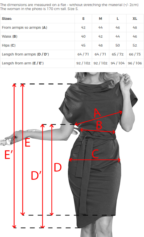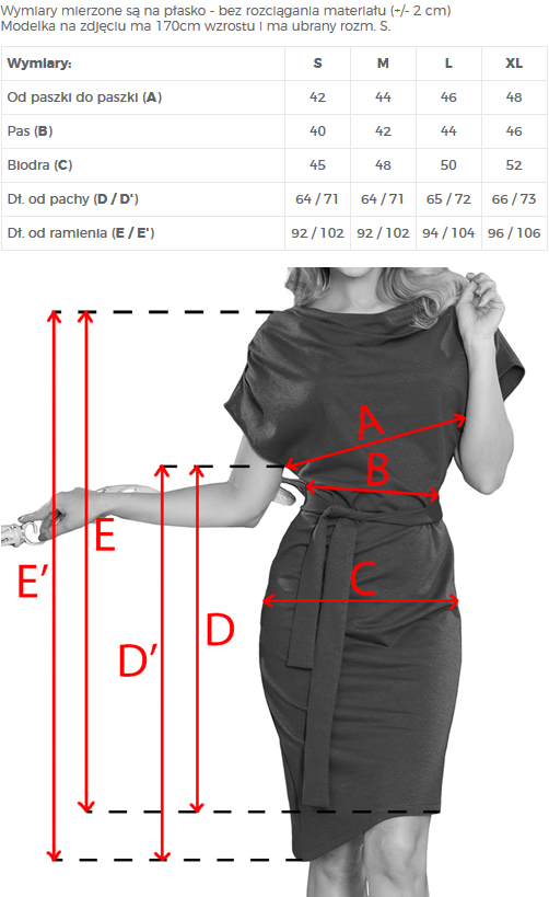 | Długość od pachy (D / D') | 62/72 | 62/72 | 62/72 | 64/73 |