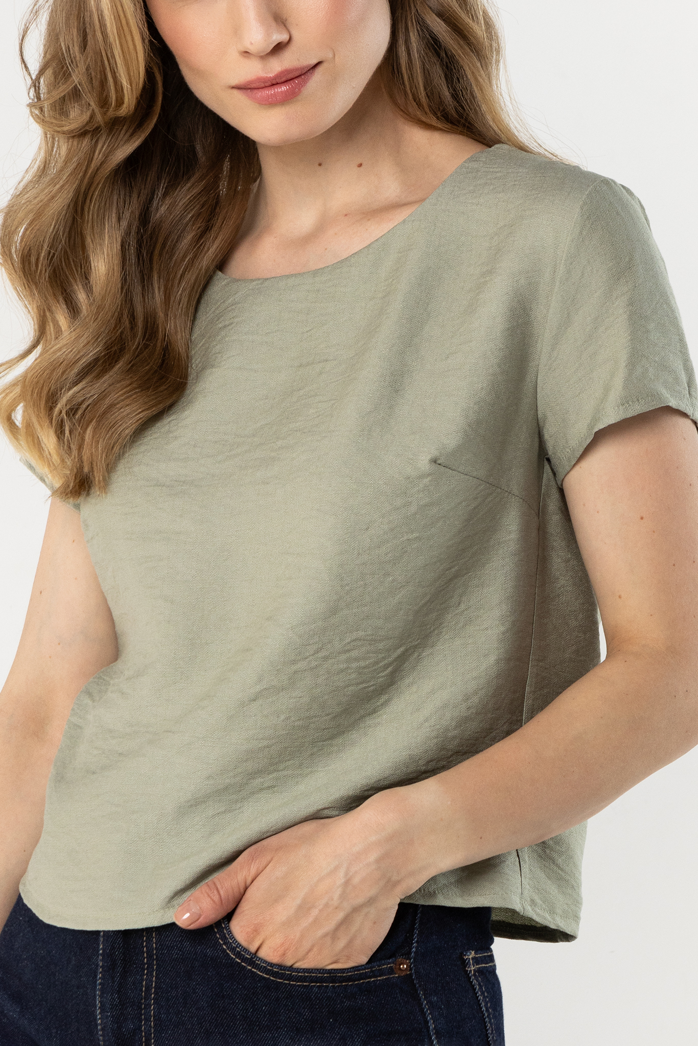 Lekka bluzka o prostym, swobodnym kroju to uniwersalny element garderoby, który świetnie sprawdzi się w codziennych stylizacjach. Półokrągły dekolt subtelnie podkreśla szyję, a krótkie rękawy zapewniają komfort i lekkość noszenia. Luźniejszy fason miękko układa się na sylwetce, gwarantując wygodę przez cały dzień. Gładka tkanina o delikatnie satynowym wykończeniu dodaje całości eleganckiego charakteru, dzięki czemu bluzka doskonale pasuje zarówno do jeansów, jak i bardziej klasycznych spodni czy spódnicy.
