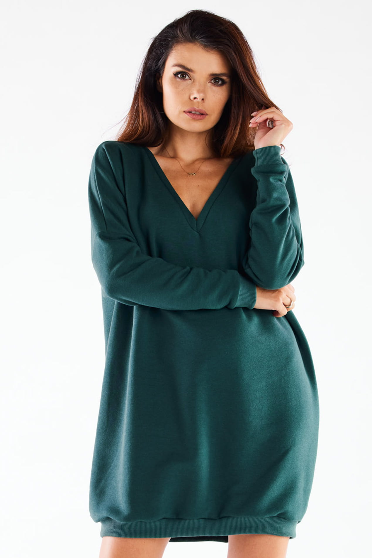 Sukienka oversize z długim rękawem i dekoltem w szpic.