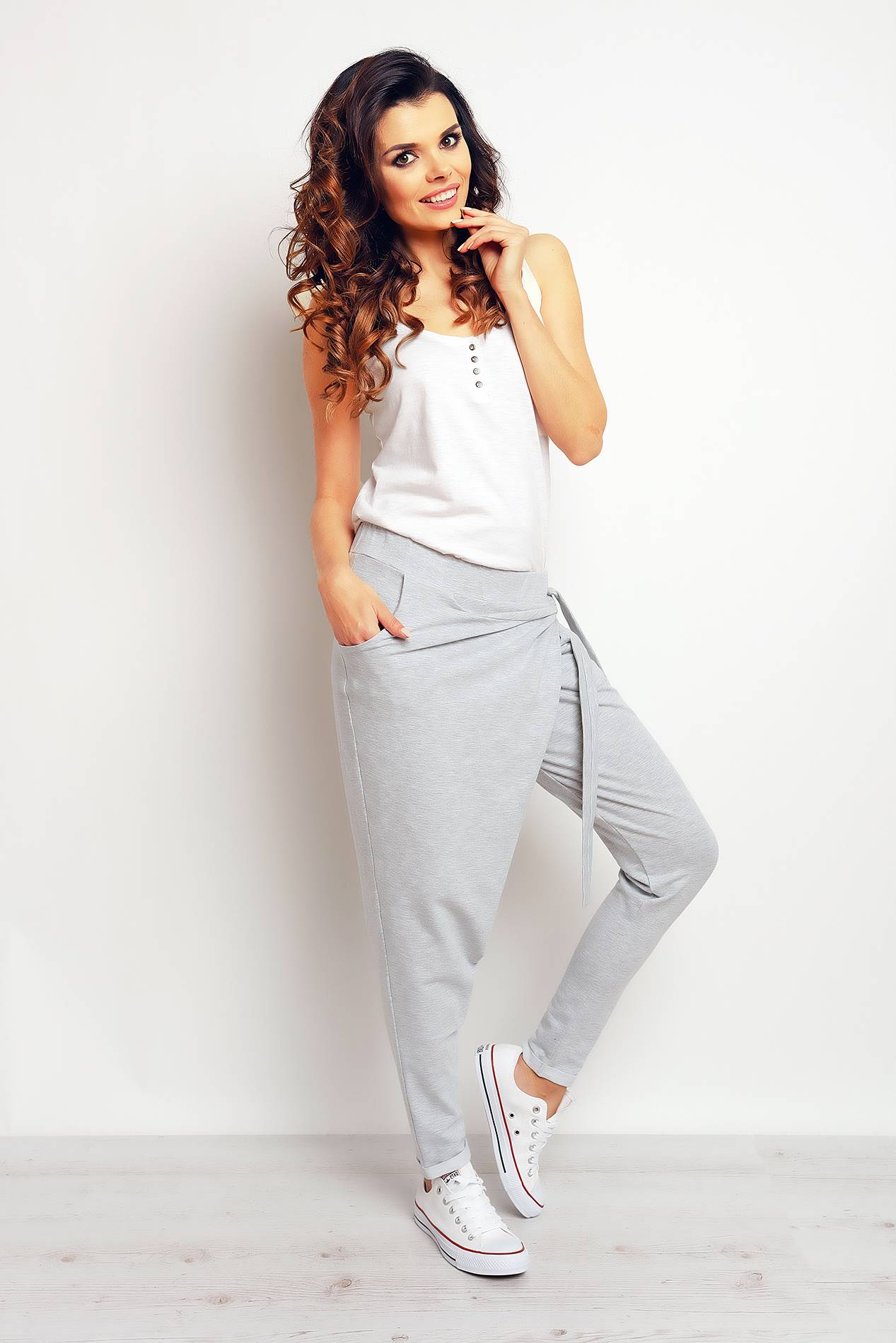 Bawełniane spodnie z zakładką Szare IN092