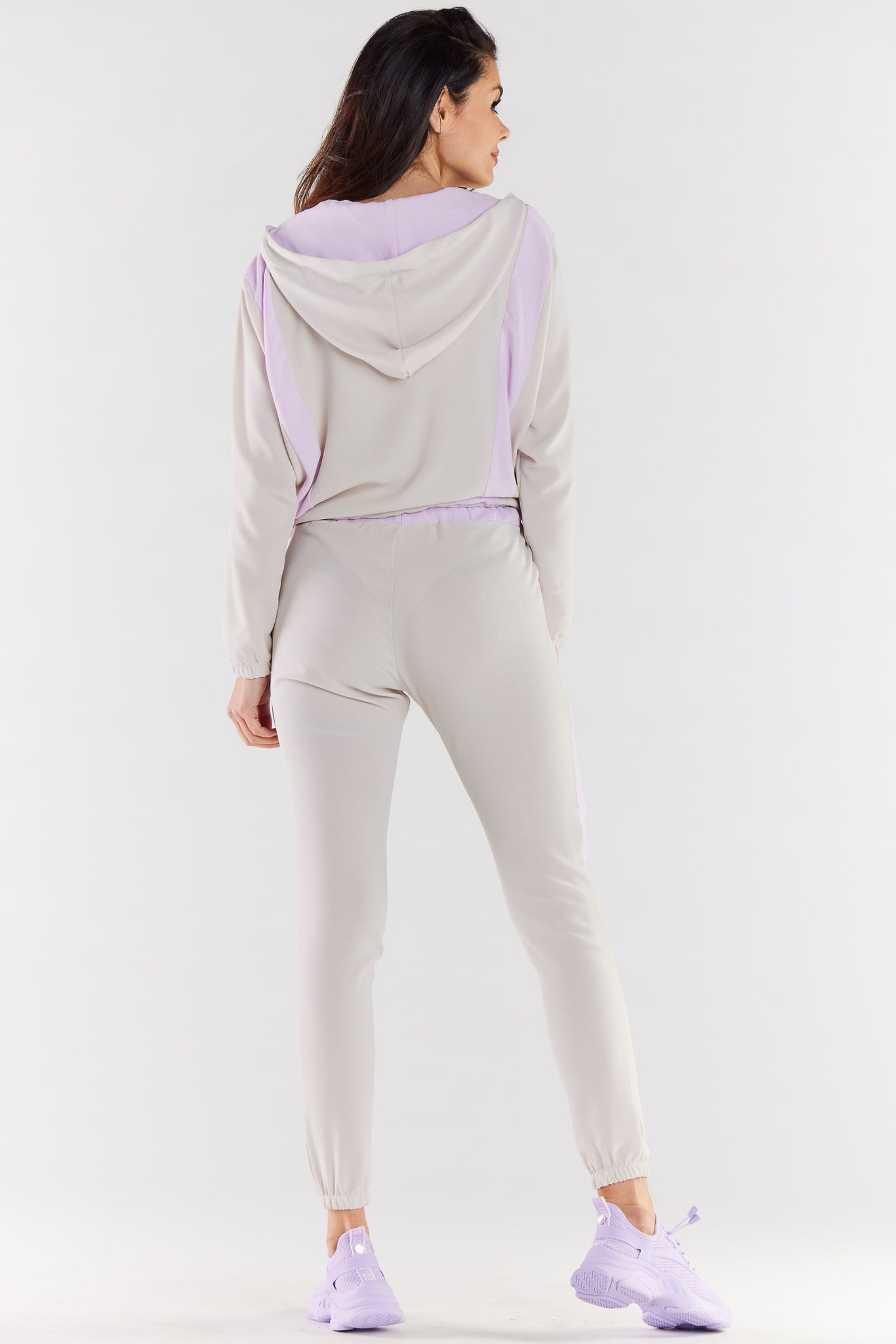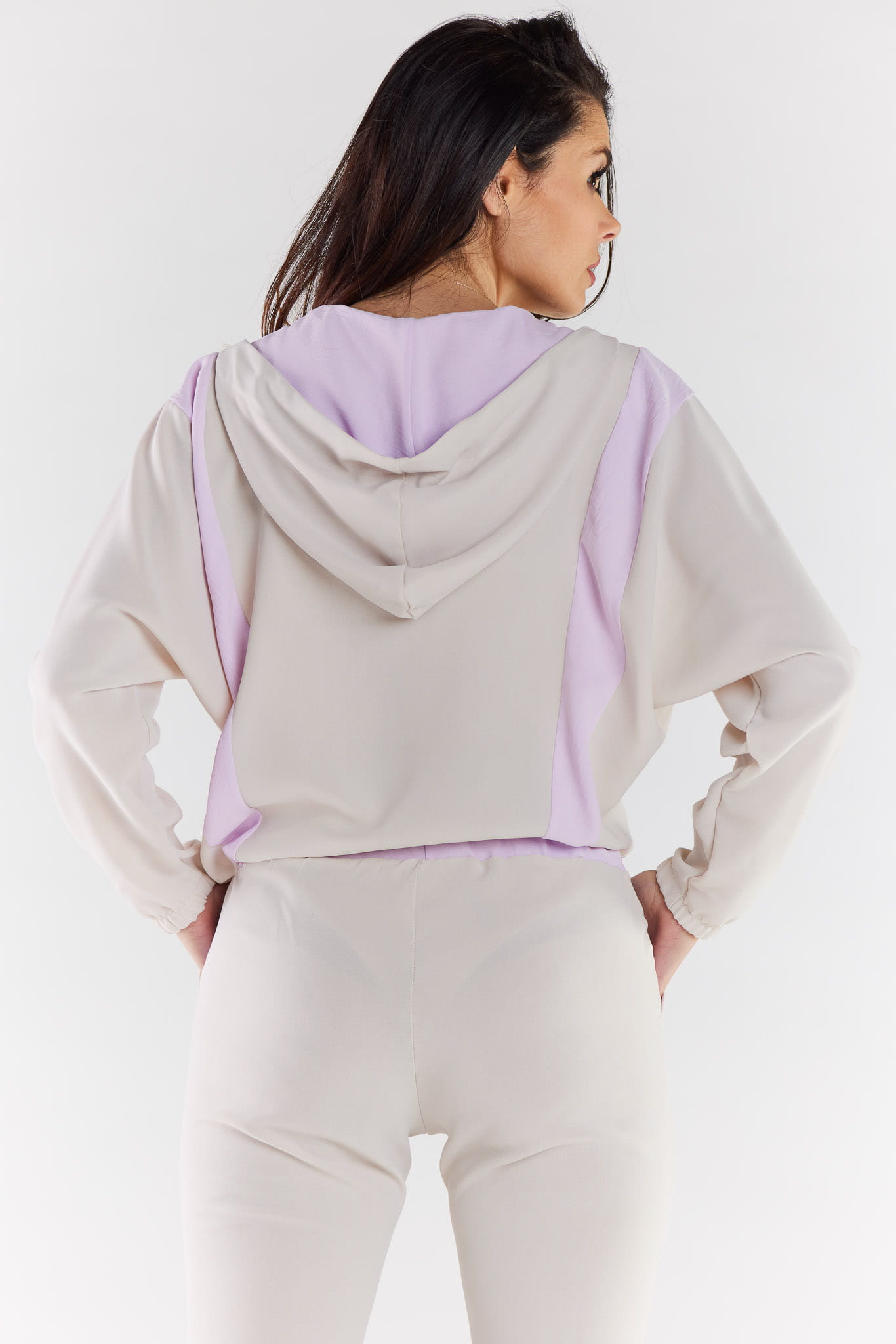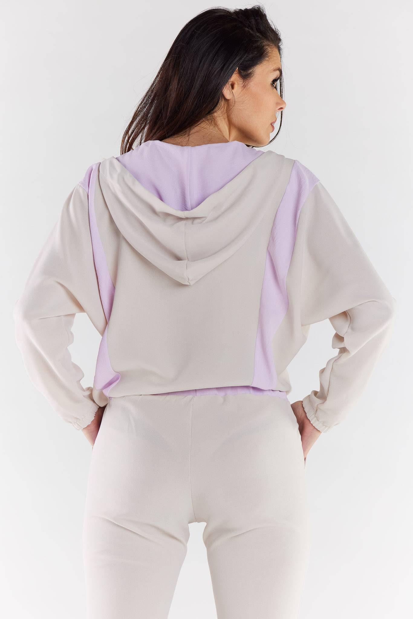 Dwukolorowa rozpinana bluza z kapturem Beżowa AW495