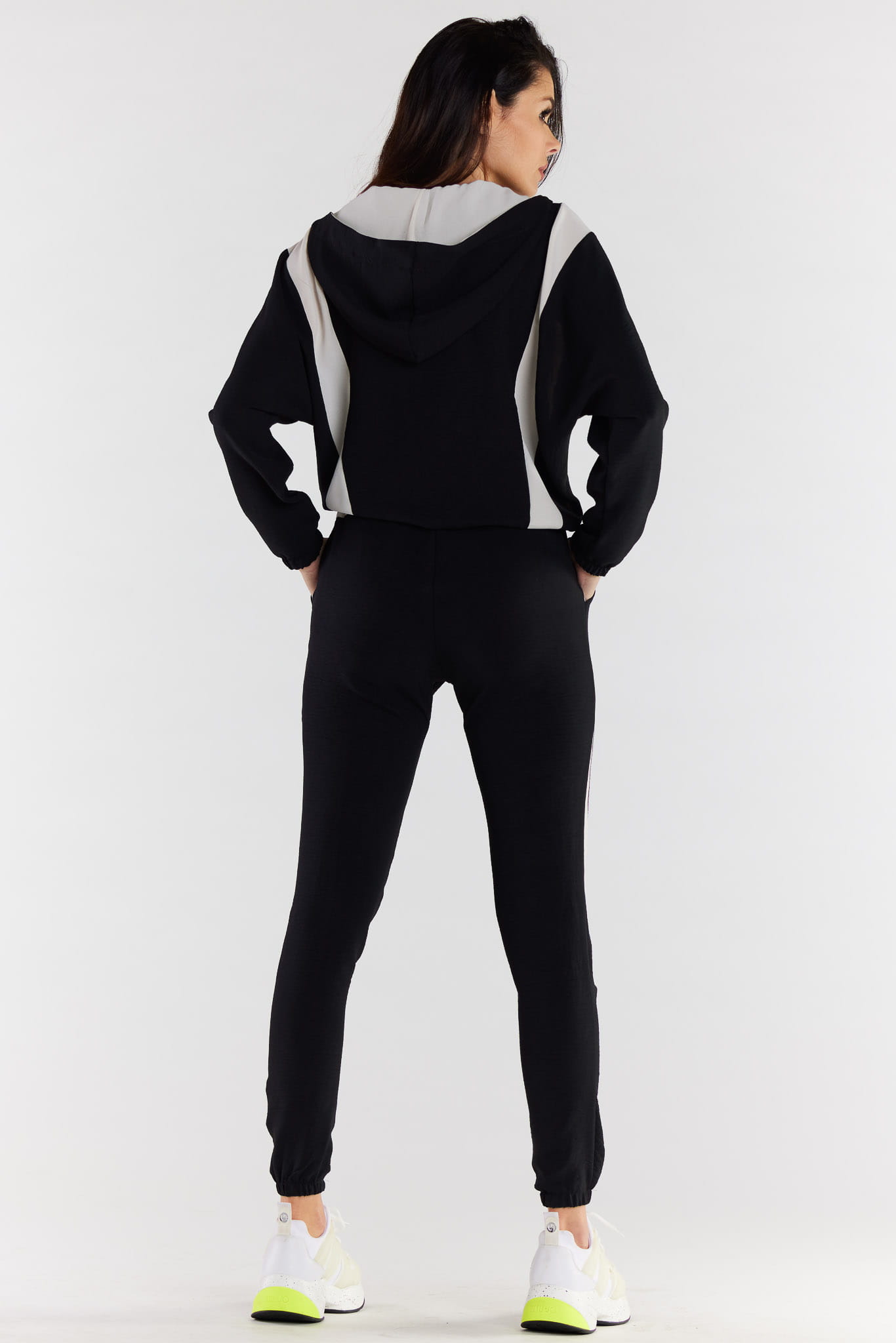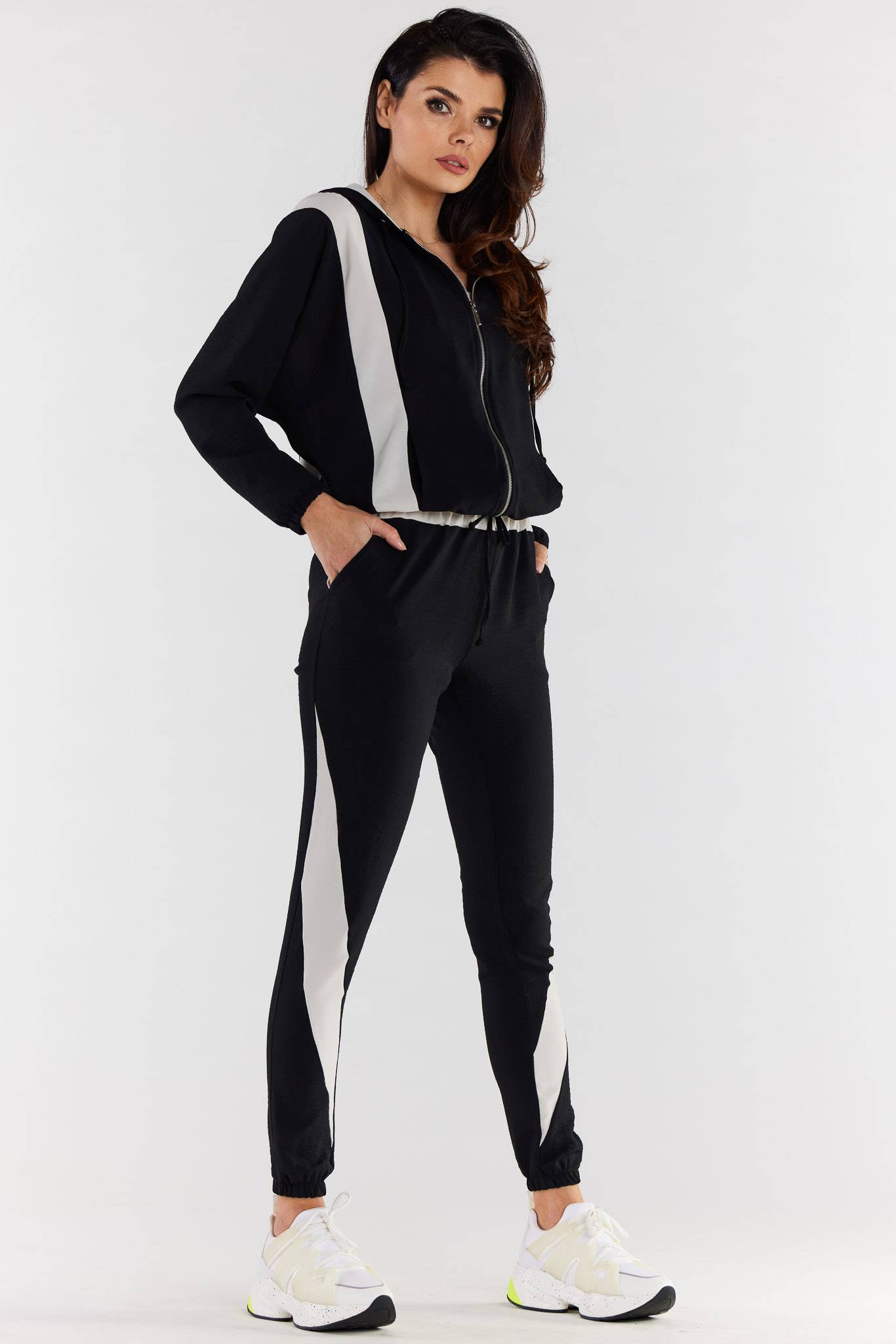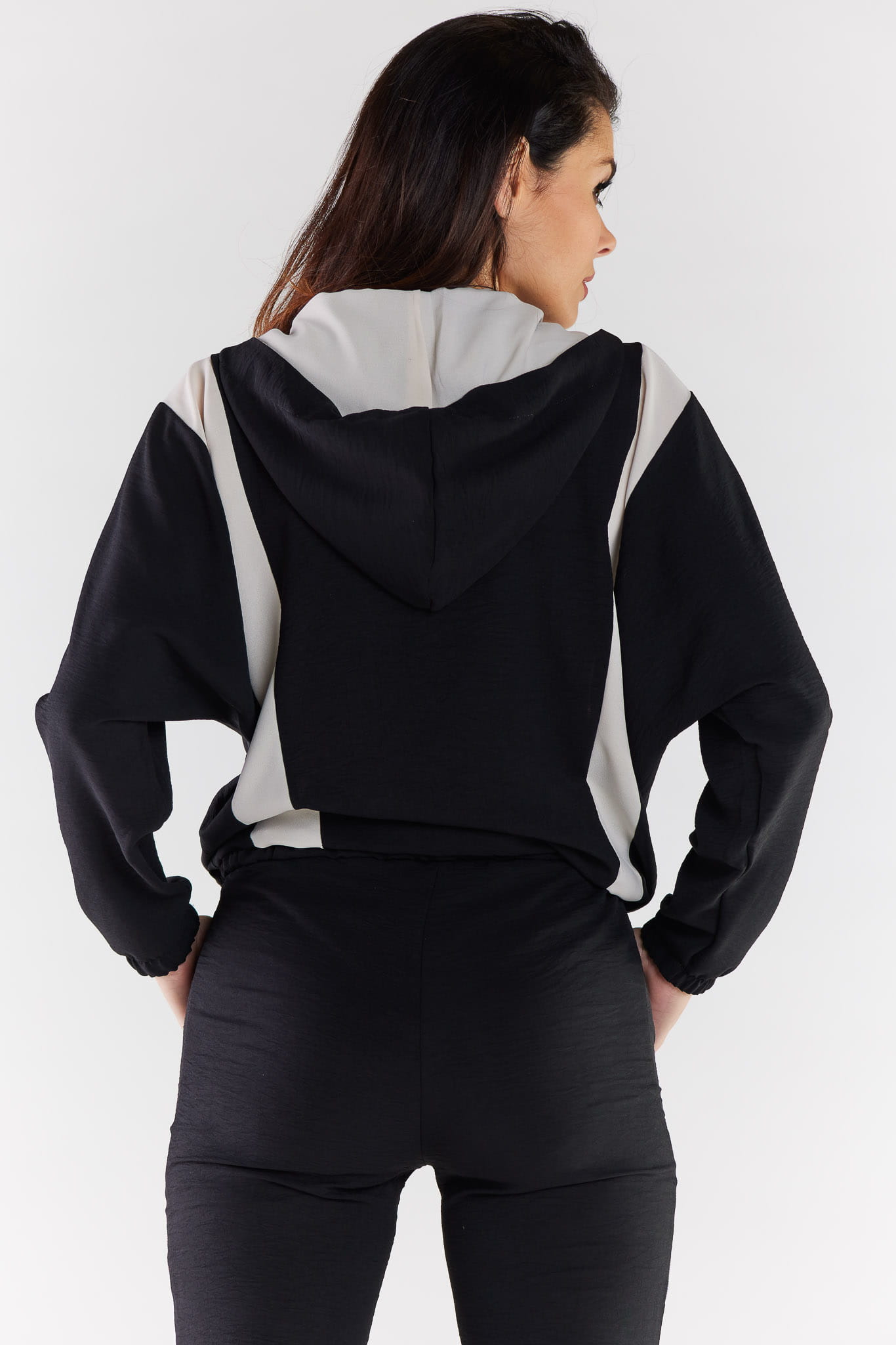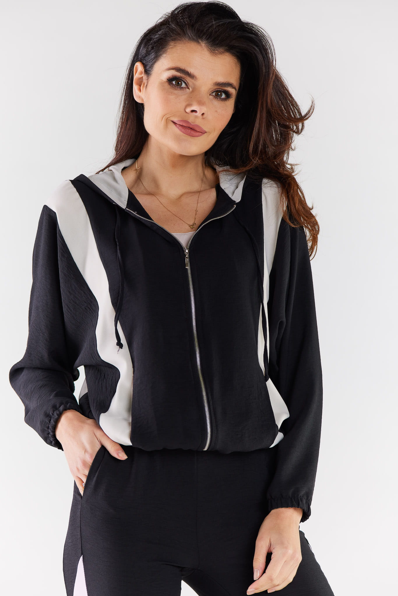 Dwukolorowa rozpinana bluza z kapturem.