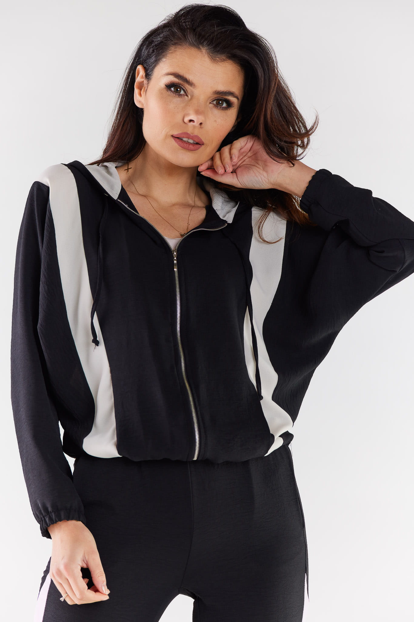 Dwukolorowa rozpinana bluza z kapturem Czarna Aw495
