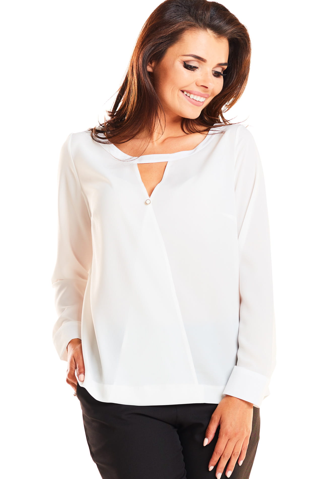 Elegancka koszula z wycięciem na dekolcie Ecru AW251