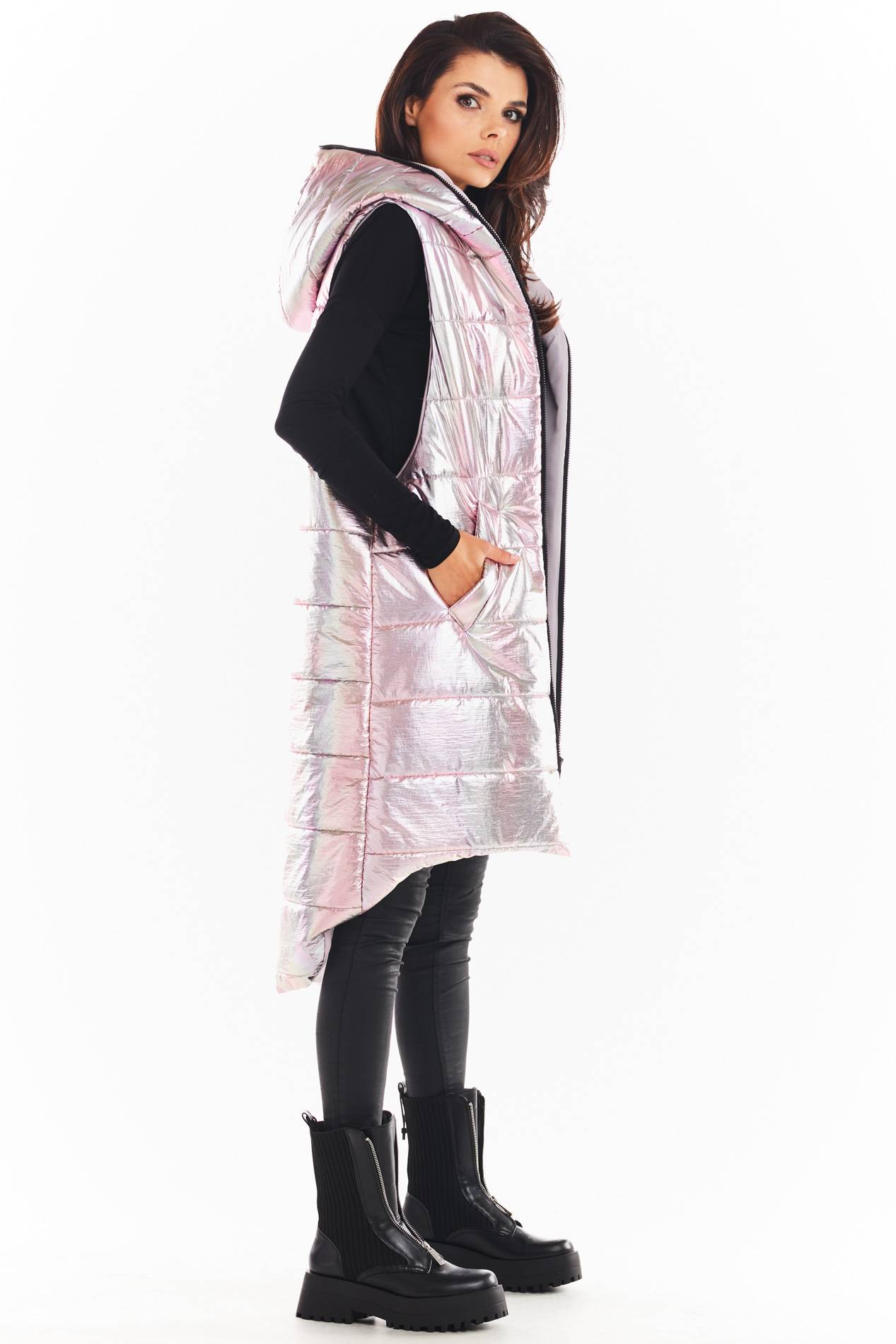 Holograficzna kamizelka z przedłużanym tyłem to idealny wybór na chłodne, jesienne dni.