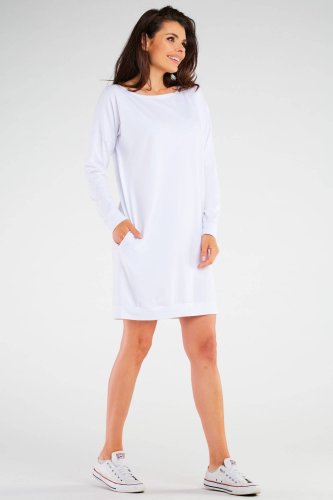 Luźna sukienka z długim rękawem.
