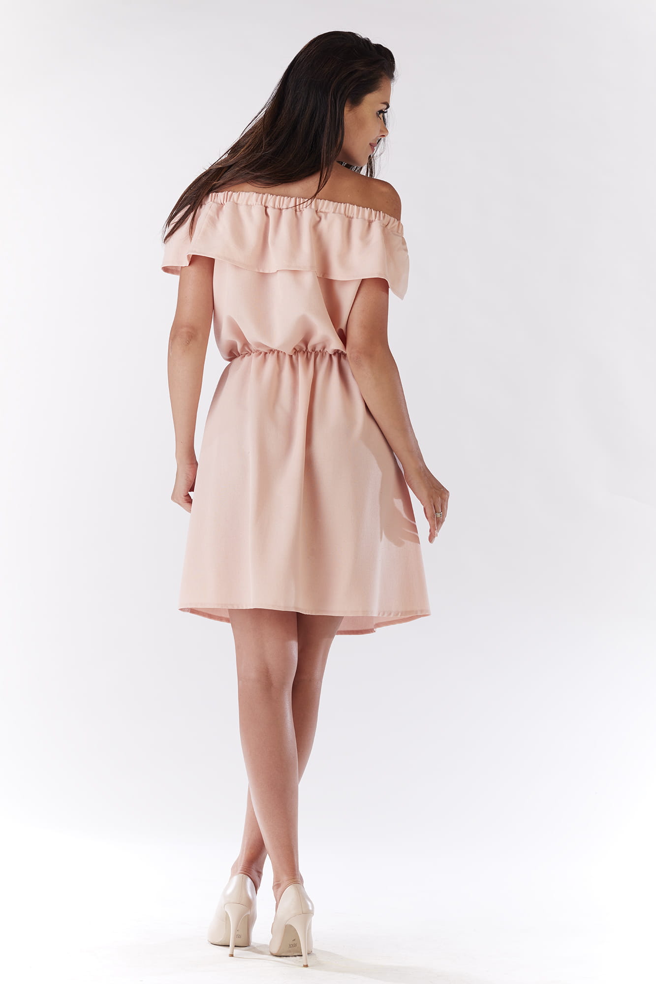 Dzięki gumce w dekolcie sukienka pięknie trzyma się na ramionach.