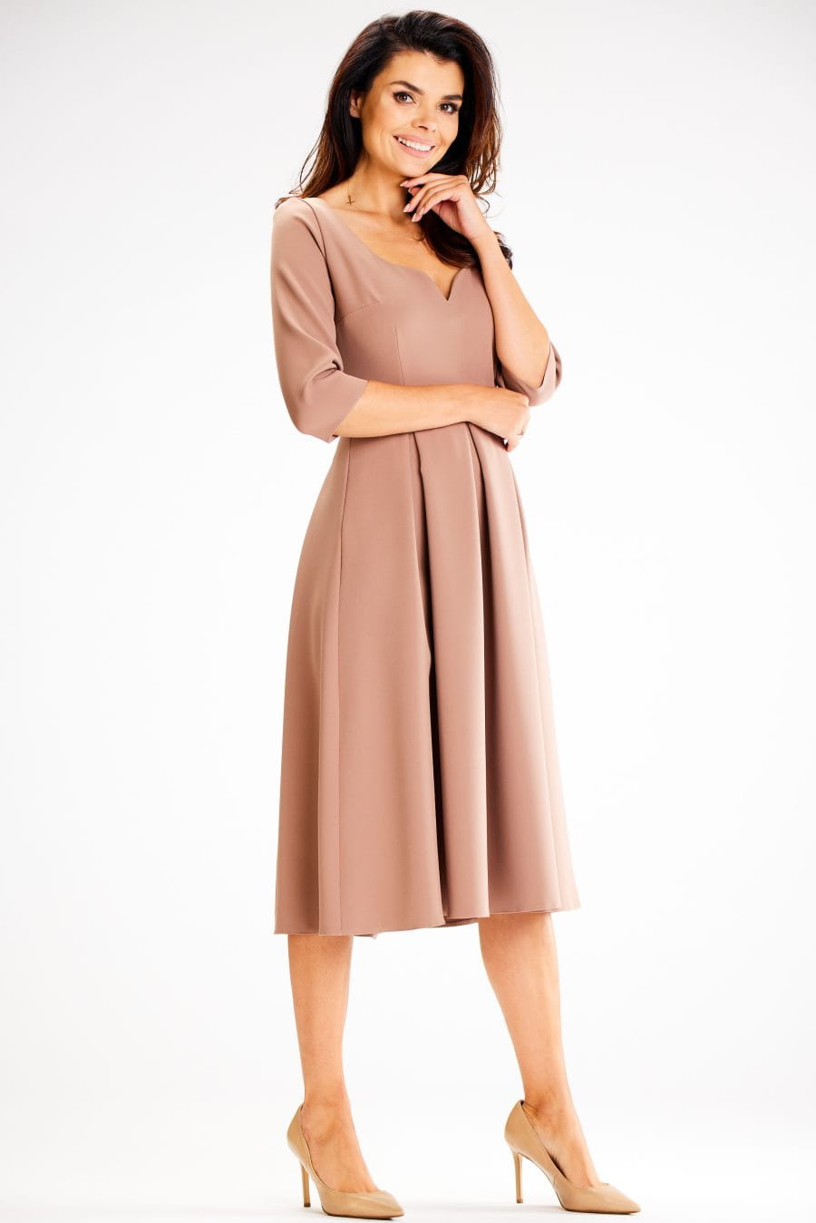 Elegancka, rozkloszowana sukienka w kolorze cappuccino.